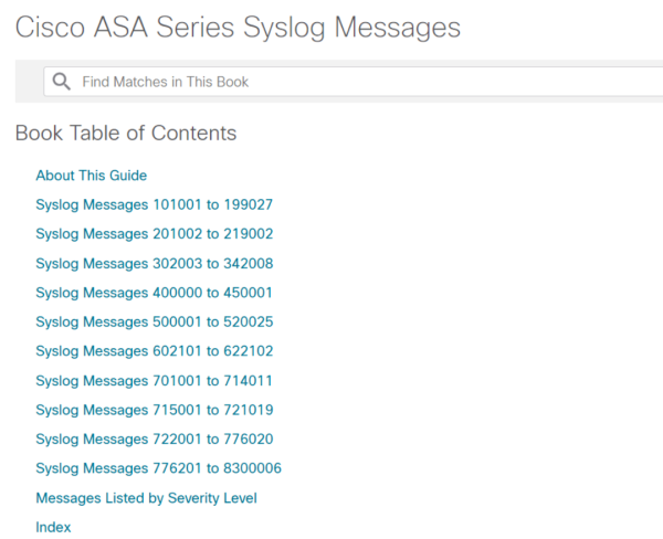 最后,很多设备的日志种类非常之多,如果全部内置到系统中,几乎是不可能完成的任务。所以大多数的产品,只内置了部分的日志解析规则。比如思科ASA防火墙日志从官网看就有好几百种日志格式,如果内置都解析,是很大的工作量,何况有时候也没有必要全部解析。