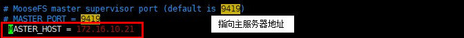 vim /etc/mfs/mfschunkserver.cfg MASTER_HOST = 172.16.10.21