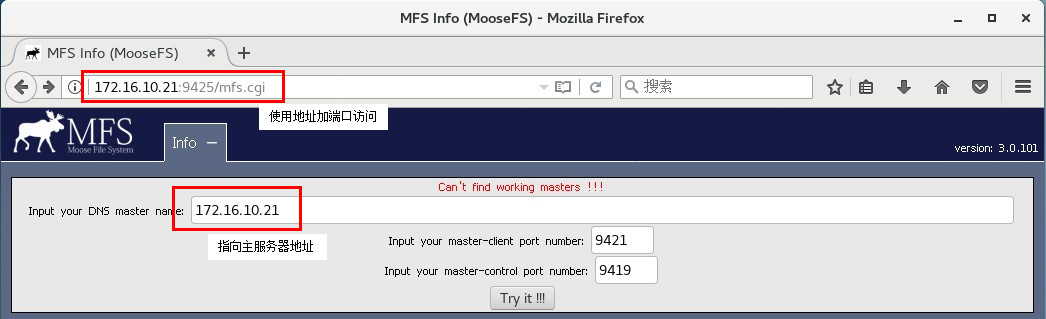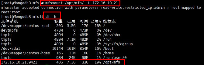 mfsmount /opt/mfs/ -H 172.16.10.21