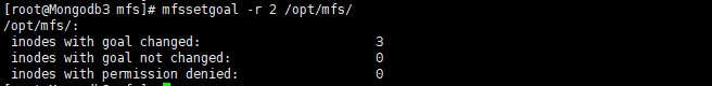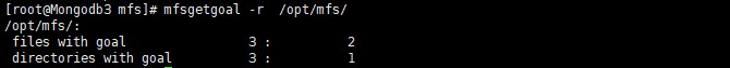 mfssetgoal命令同来设置文件被复制的份数,生产环境中Chunk节点数量应至少大于2,文件副本数量小于等于Chunk服务器数量。