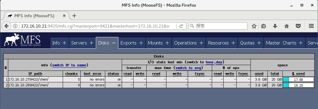 Mfscgiserv是一个用Python编写的web服务器,监听端口是9425,可以在Master Server启动监控,用户利用浏览器就可以全面监控所有客户挂载、Chunk Server、Master Server,以及客户端的各种操作等。