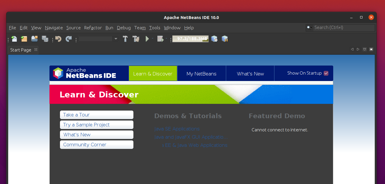 该过程可能需要一些时间才能完成,因为总下载大小约为1 GB。完成后,您将在应用程序启动器中看到该应用程序。您不仅会获得带有Snap的最新Netbeans,而且安装的版本将自动更新为较新的版本。