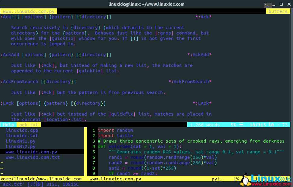 Ack是全世界程序员普遍使用的Vim插件之一。 这个特定的插件在Vim编码时基本上充当程序员的搜索工具。 我们时不时地要搜索包含特定行甚至只是一个单词的特定文件,而ack正是适合Vim用户的插件。