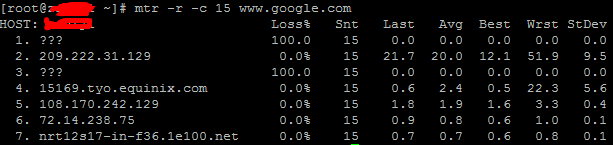 在启动mtr时,它将通过发送具有故意低TTL的数据包来调查运行其的主机mtr和HOSTNAME之间的网络连接。 它继续发送低TTL的数据包,并注意中间路由器的响应时间。 这使mtr可以打印到HOSTNAME的Internet路由的响应百分比和响应时间。 数据包丢失或响应时间的突然增加通常表示链路不良(或只是过载)。