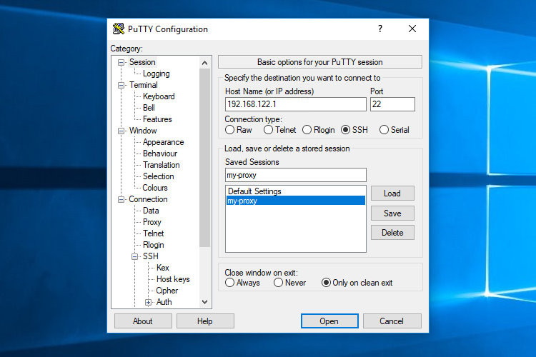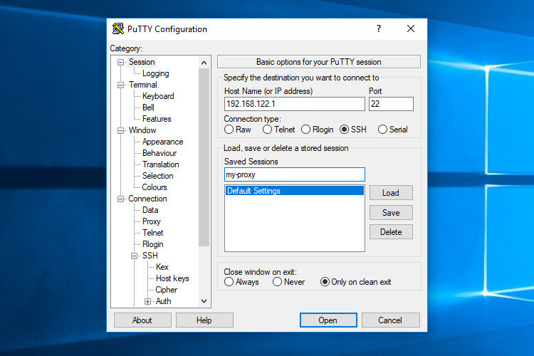 返回 Session 页面以保存设置,这样您每次都不需要输入它们。在 Saved Session 字段中输入会话名称,然后单击 Save 按钮。