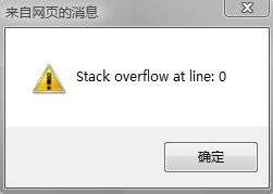 | 导读 | 有时候浏览网页的时候会出现 stack overflow at line 0的错误提示,弹出如下的对对话框。而且电脑变得很卡 很慢,这是因为某些脚本在调试过程中可能会造成死循环或消耗大量内存,一旦可使用的内存被消耗光,就会造成内存溢出,既堆栈溢出。 |
