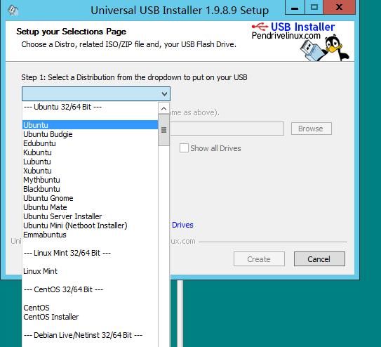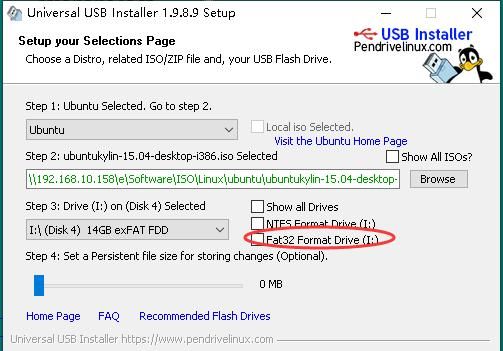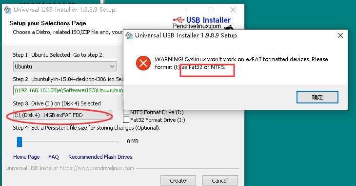 上面的选择的U盘非FAT32或者NTFS格式,因而需要将U盘格式化为NTFS格式或者FAT32格式。因而勾选setup3后面的fat32 format drive,然后点击Create开始写入U盘