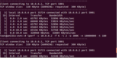 -s:以服务器方式启动-i:以秒为单位显示报告间隔-w:指定TCP窗口大小,默认是8KB Step2. 启动客户端$iperf3 -c 192.168.1.100(也可为公网IP) -i 1 -w 448k -t 10