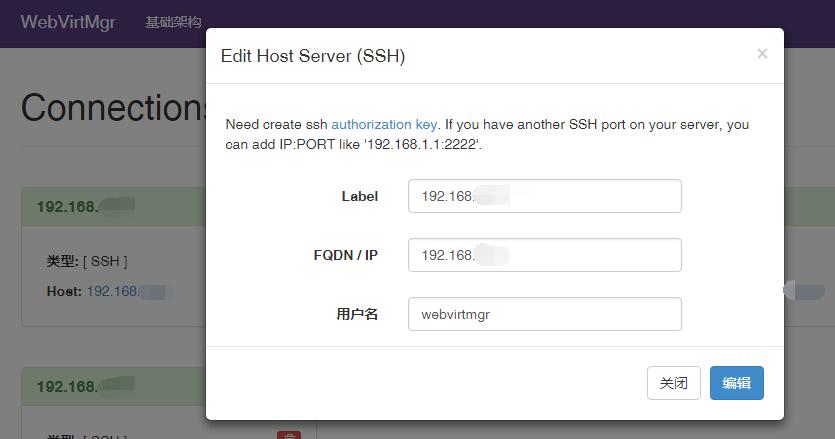 | 导读 | 最近有两台新的虚拟化主机安装好libvirtd后发现用以前的TCP连接方式会导致webvirtmgr无法和受控主机通信,显示验证失败,大概查了下是yum源中的 libvirt 更新了,默认加密模式变更了,导致使用saslpasswd2 -a libvirt 命令生成的密钥无法通过验证,折腾了下没搞好,就干脆切换到SSH方式进行控制。 |
