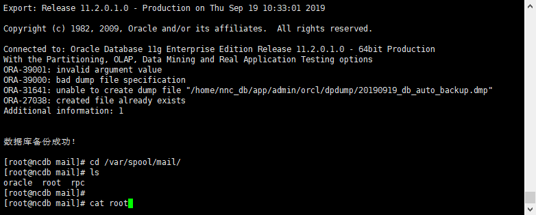 然后定义一个变量date(它的作用是为每天备份的文件命名便于识别),使用expdp命令导出数据库,代码如下:
