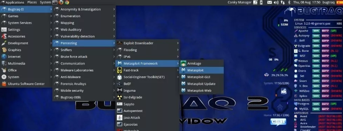 Bugtraq包含了大量的渗透测试工具——移动取证、恶意软件测试,以及Bugtraq社区专门设计的工具。Bugtraq团队是一个非常有经验的极客和开发者组织。