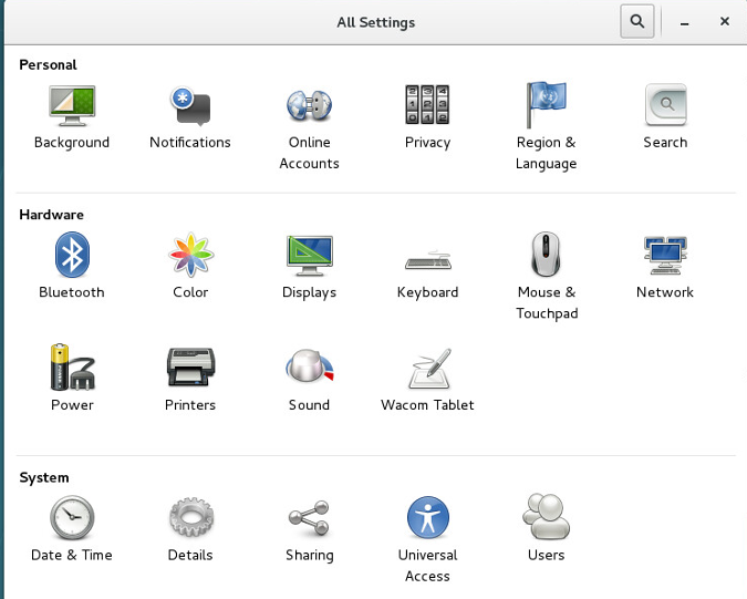 要在你的 RHEL7 电脑上允许远程访问,在 Linux 桌面上打开“所有设置”。
