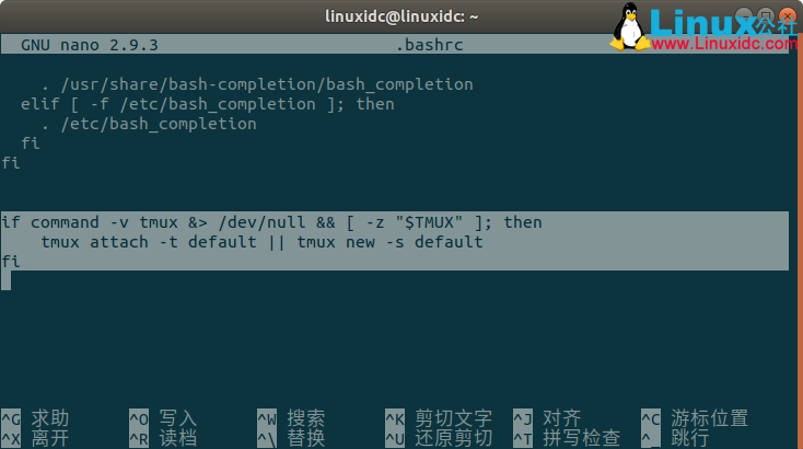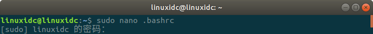 linuxidc@linuxidc:~$ sudo nano .bashrc