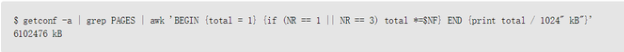 该命令通过将输出的第一行和最后一行中的值相乘来计算内存,如下所示: