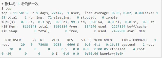 top显示了系统总体的CPU和内存使用情况,以及各个进程的资源使用情况