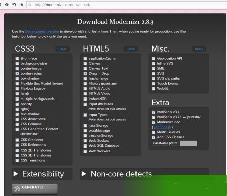 (2)如果发布版本,则选择需要检测的功能,创建定制的modernizr使用。
