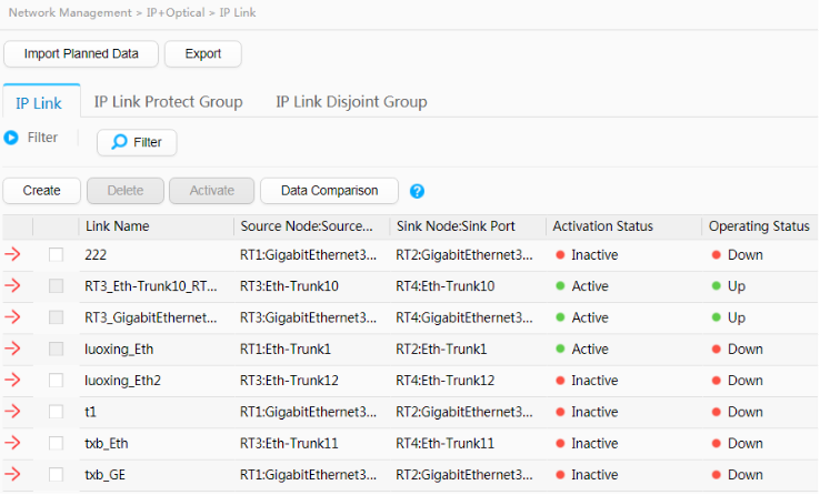 在网络部署前,导入的Potential IP Link拓扑(还未激活),P-IP Link列表视图: