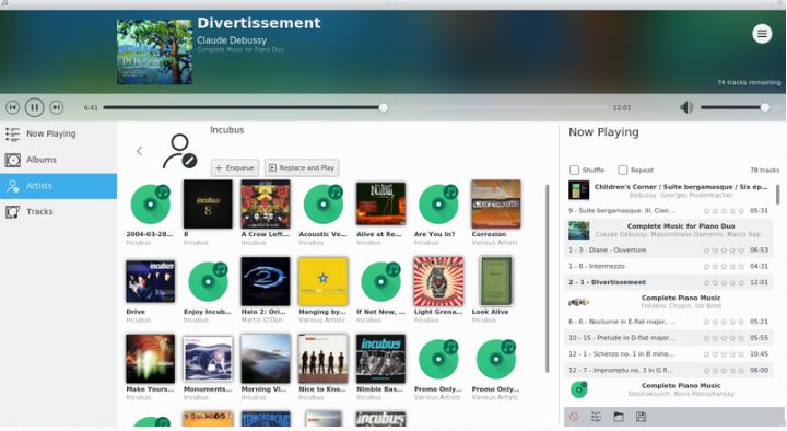 我们已经测试了不同的Linux音乐播放器,以创建最佳列表。 而Elisa也属于开源类别的优秀音乐播放器,以及良好的界面和Plasma桌面完整性。 我们可以使用Flatpak框架轻松地在Ubuntu中安装Elisa。 音乐播放器的界面非常现代,可以在曲目,专辑和艺术家的基础上显示音乐列表。