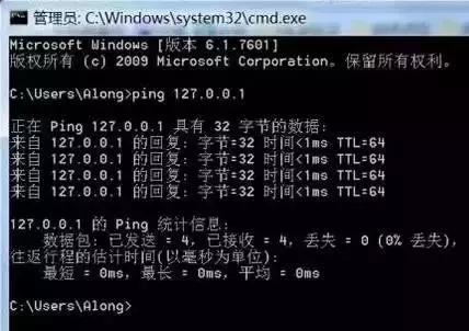 ping 127.0.0.1 能通,看到丢失=0,说明没有丢包,这就可以判断你电脑的TCP/IP协议栈没有问题。