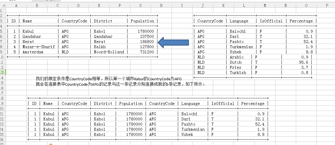 比如其上两张表,我们想知道某一城市所使用的语言,就可以分为两个步骤: