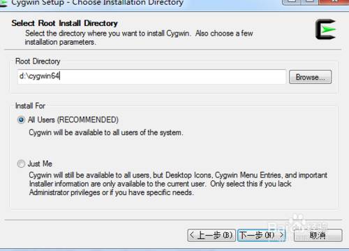 下载完毕后,双击安装包 安装cygwin