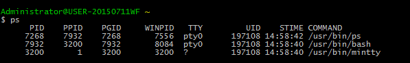 - 1.比如PS,相当于Windows下的TM(任务管理器),直接Ps的话那么得到的会是Cygwin下的Shell的进程如下