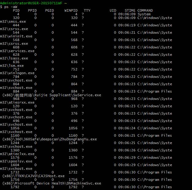 - 2.如果这个时候你需要在Cygwin下显示Windows下的进程你可以在PS后面加上参数-aW