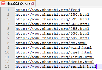 执行上面脚本时候,就会在指定目录下生成包含所有获取的404页面链接的文件,每个连接占一行。例如: