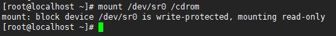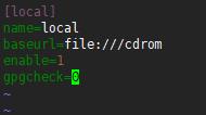 4.这第一行意思是yum源仓库的名字,name后是仓库名字的描述,baseurl后是仓库的位置,enable后的1是开启该仓库的意思,gpgcheck是检查包的签名,后面的0是关闭的意思,由于这里没有下载pki证书,就不开启了,再说centos安装盘自带的包应该也不会有问题的,所以这一项就关闭了。下面就是将光盘挂载在/cdrom下,以便yum访问,使用mount /dev/sr0 /cdrom即可完成挂载