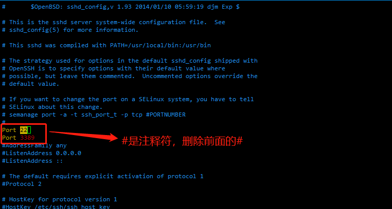 1.打开ssh端口配置文件:vim /etc/ssh/sshd_config,找到如下图所示的端口,改为自己想改的端口,也可以同时打开多个端口: