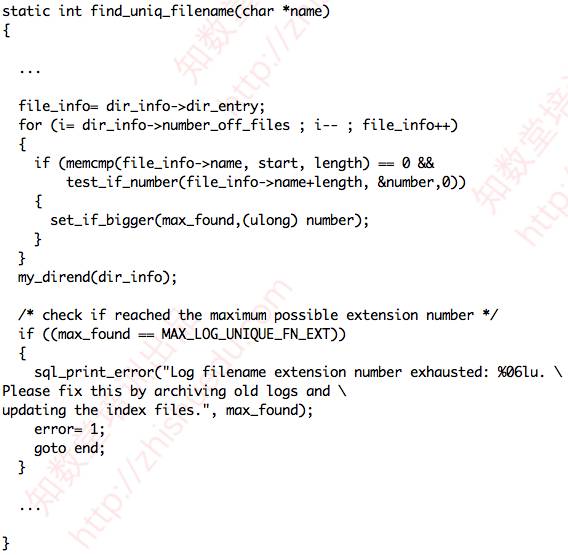 也就是当找到binlog文件最大序号,达到起定义的最大值时,mysqld就会退出。 我们再看下 MAX_LOG_UNIQUE_FN_EXT 宏定义: