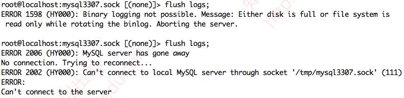 然后启动mysqld,再执行 FLUSH LOGS,看看会怎样。