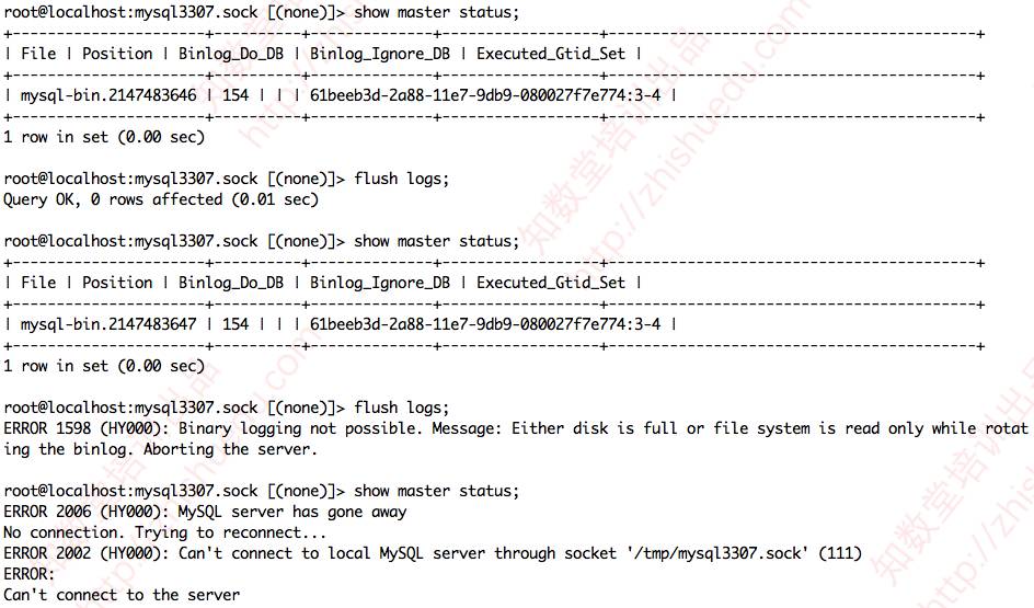 可以看到,mysqld并没有挂掉,也没重新从mysql-bin.000001开始,这个序号会继续增加。