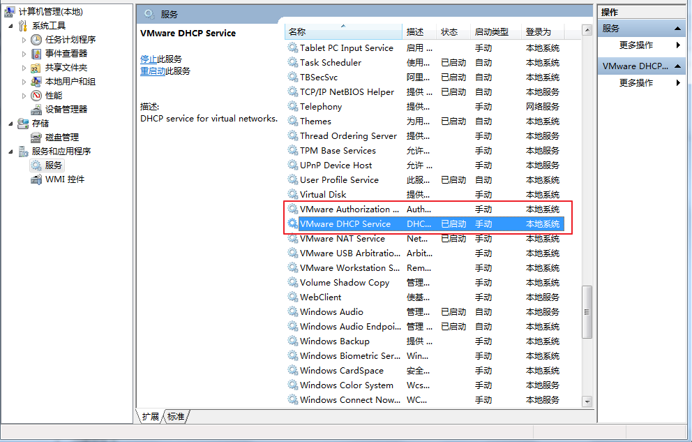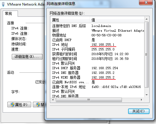 查看网络和共享中心中的“VMware Network Adapter VMnet8”的状态