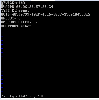 按“insert”键, 就意味着进入编辑模式。将ONBOOT=yes,随后按“esc”键,“:”键,“w”键,“q”键,ifcfg-eth0就被修改了