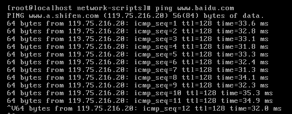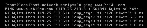 ping一下baidu.com,可以看到能够联网(ctrl+c退出ping)