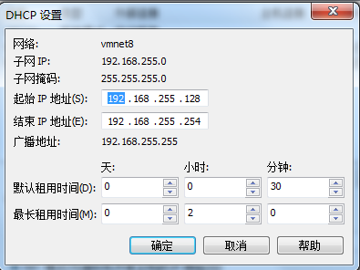 开始IP地址为“192.168.255.128” 结束IP地址为“192.168.255.254” 子网掩码为“255.255.255.0”