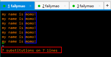 替换某一行某个内容:%s/momo/failymao/1 (替换最后一行)