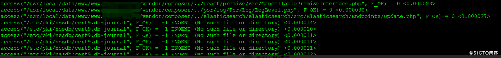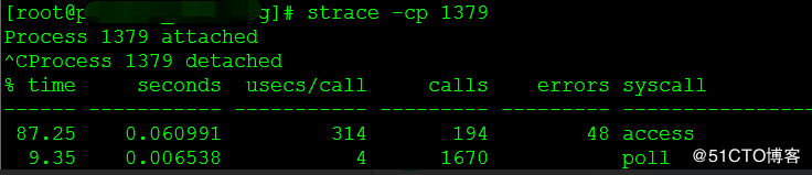 strace -T -e access -p 1379