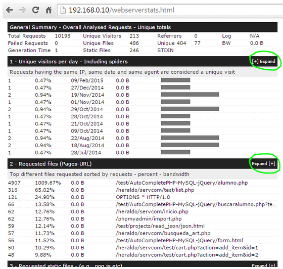 有时候你不想每次都实时去检查你的系统状态,可以保存一份在线的分析文件或打印出来。要生成一个HTML报告,只需要通过之前提到GoAccess命令,将输出来重定向到一个HTML文件即可。然后,用web浏览器来将这份报告打开即可。