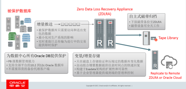 ZDLRA是一个专门为保护数据库而设计的数据保护系统,设计的目的就是为Oracle数据库提供最高级别的保护,并保证备份/恢复性能和效率,同时,确保能够支持Oracle数据库的所有版本及承载数据库的各类型硬件、操作系统和业务环境。它与Oracle的数据库紧密集成,为数据库提供持续数据保护,从生产服务器卸载了几乎所有的备份处理系统资源开销。