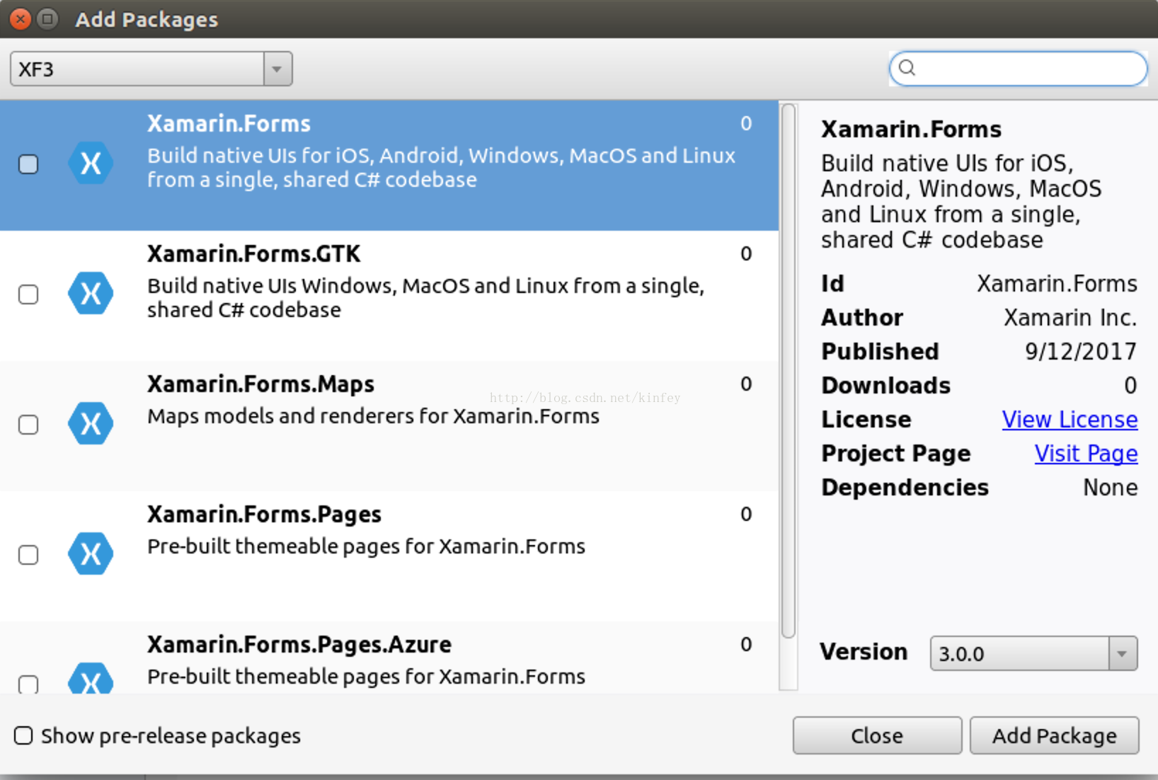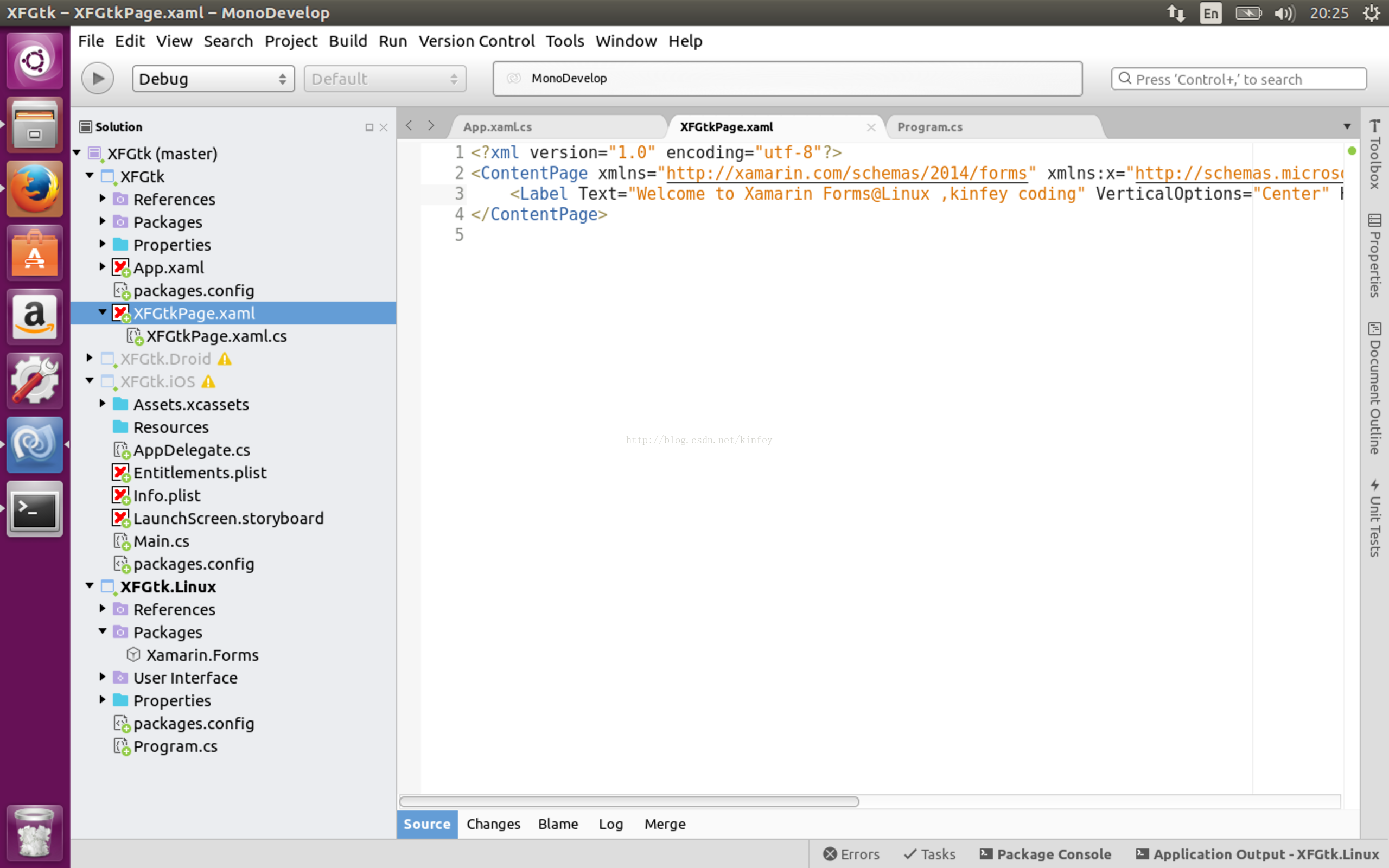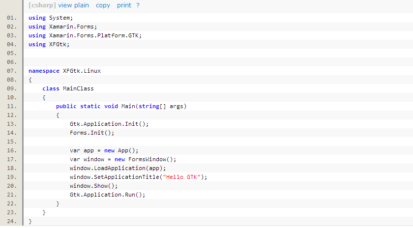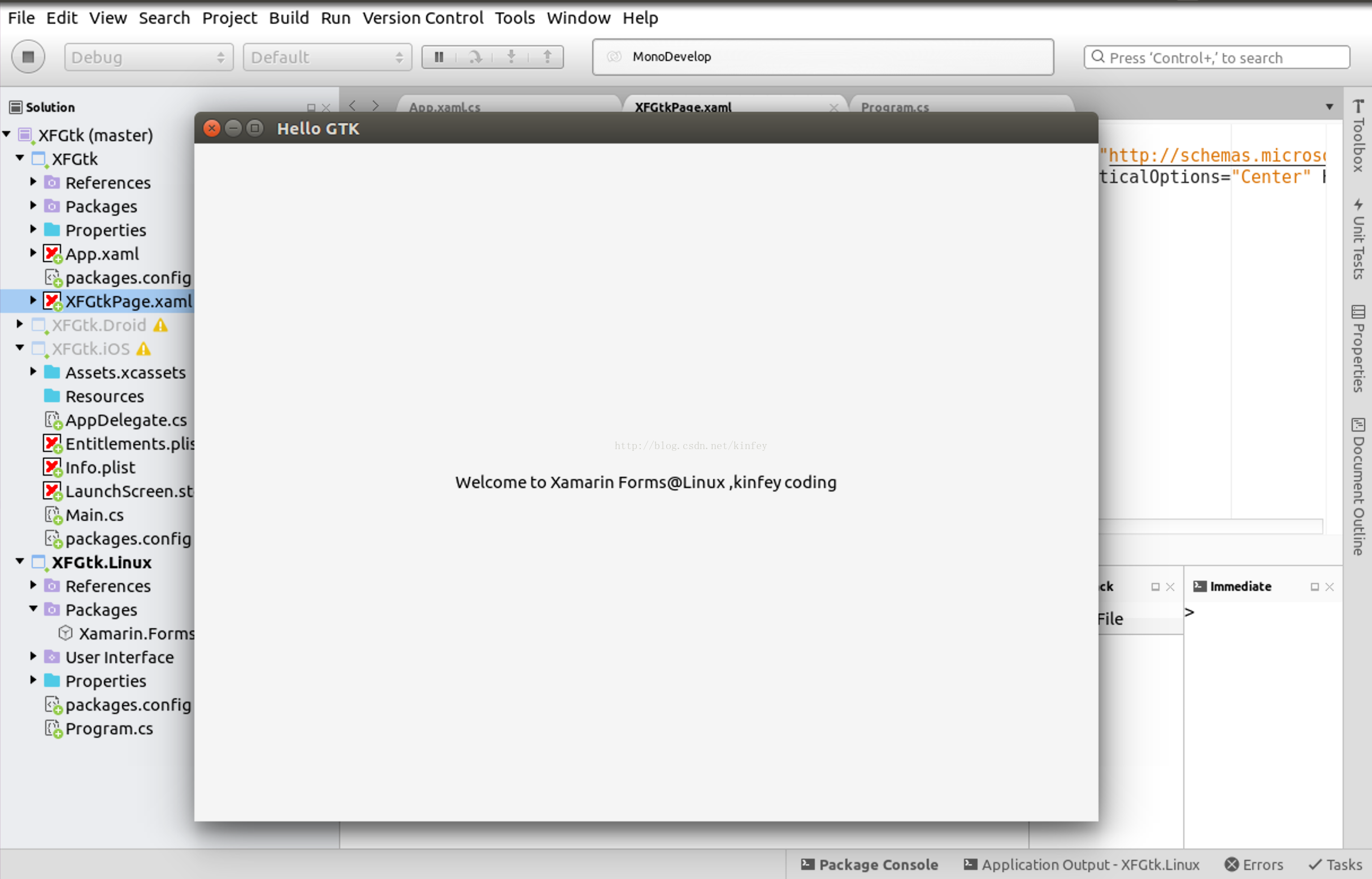 开发,现在Windows/MacOS上创建一个Xamarin.Forms的项目(现在还不能在Linux上创建Xamarin.Forms项目,现在Xamarin.Forms.GTK项目还没有正式引入Xamarin.Forms的解决方案模版), 然后在Linux中打开,在创建好的项目中添加一个GTK#项目。