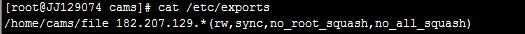 然后输入/home/cams/file 182.207.129.* (rw,sync,no_root_squash,no_all_squash)
