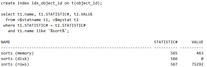 未建索引前,观察一下数字字典中记录的系统排序情况,如下: