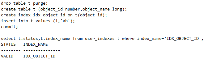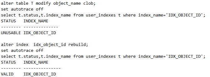 接下来将long修改为clob,发现索引失效了,必须重建索引,如下: