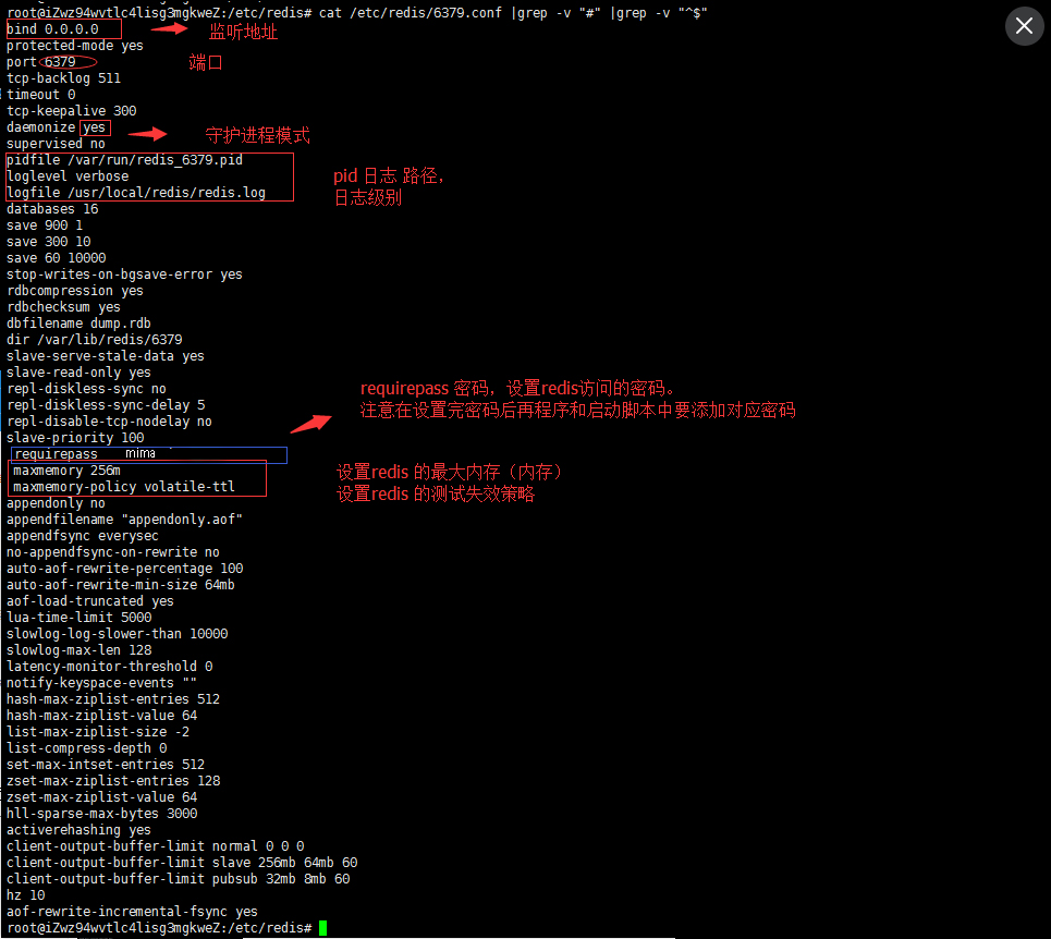 cat /usr/local/redis/etc/redis.conf |grep -v "^$" |grep -v "#