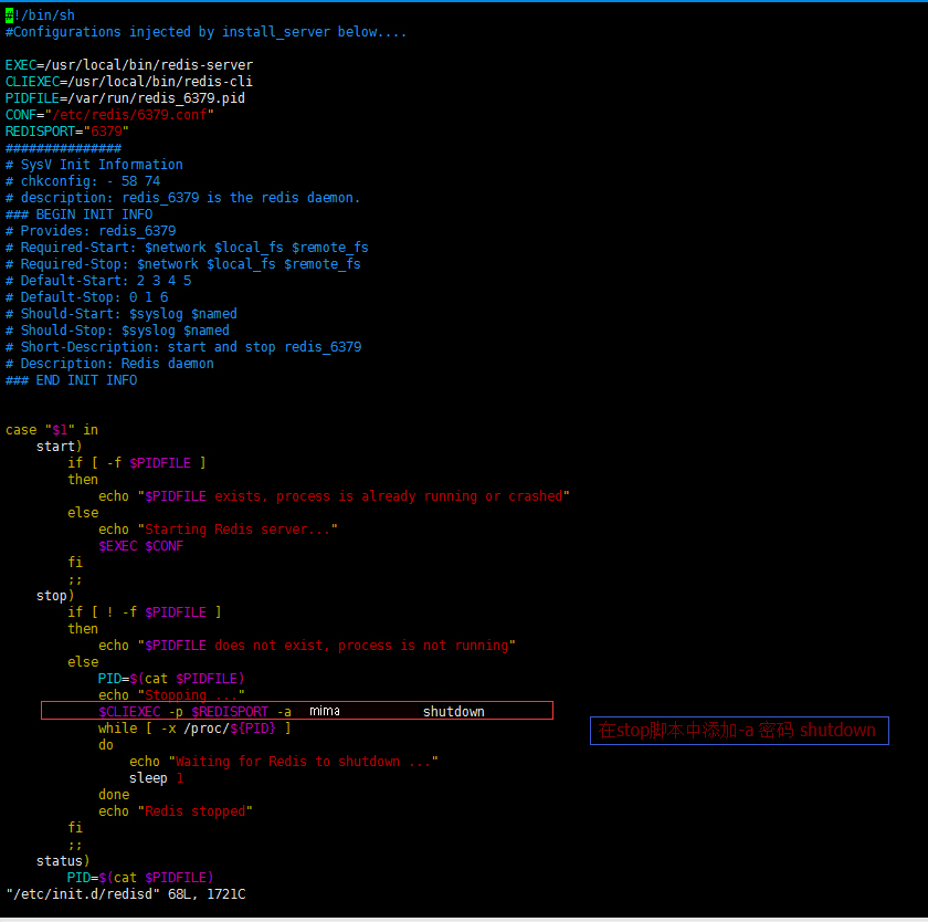 $CLIEXEC -p $REDISPORT -a mima shutdown \\###修改内容,添加-a密码验证的项目###