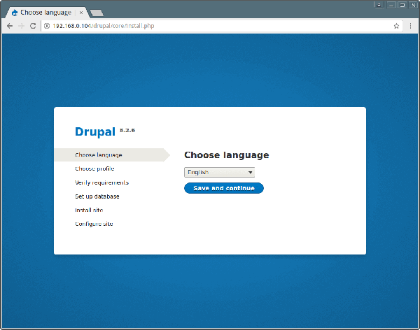 安装过程中,我使用 drupal.tecmint.com 作为网站主机名,IP 地址为 192.168.0.104。你的环境也许与这些设置不同,因此请适当做出更改。