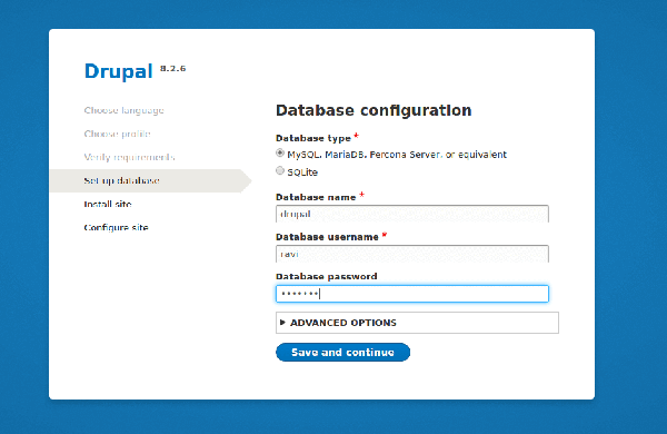 站点名称 – TecMint Drupal Site 站点邮箱地址 – *****@tecmint.com 用户名 – ***** 密码 – ########## 用户的邮箱地址 – *****@tecmint.com 默认国家 – India 默认时区 – UTC