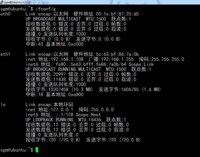 这个命令与Windows的“ipconfig”作用一致,用于显示网络接口,子网掩码等详细信息。